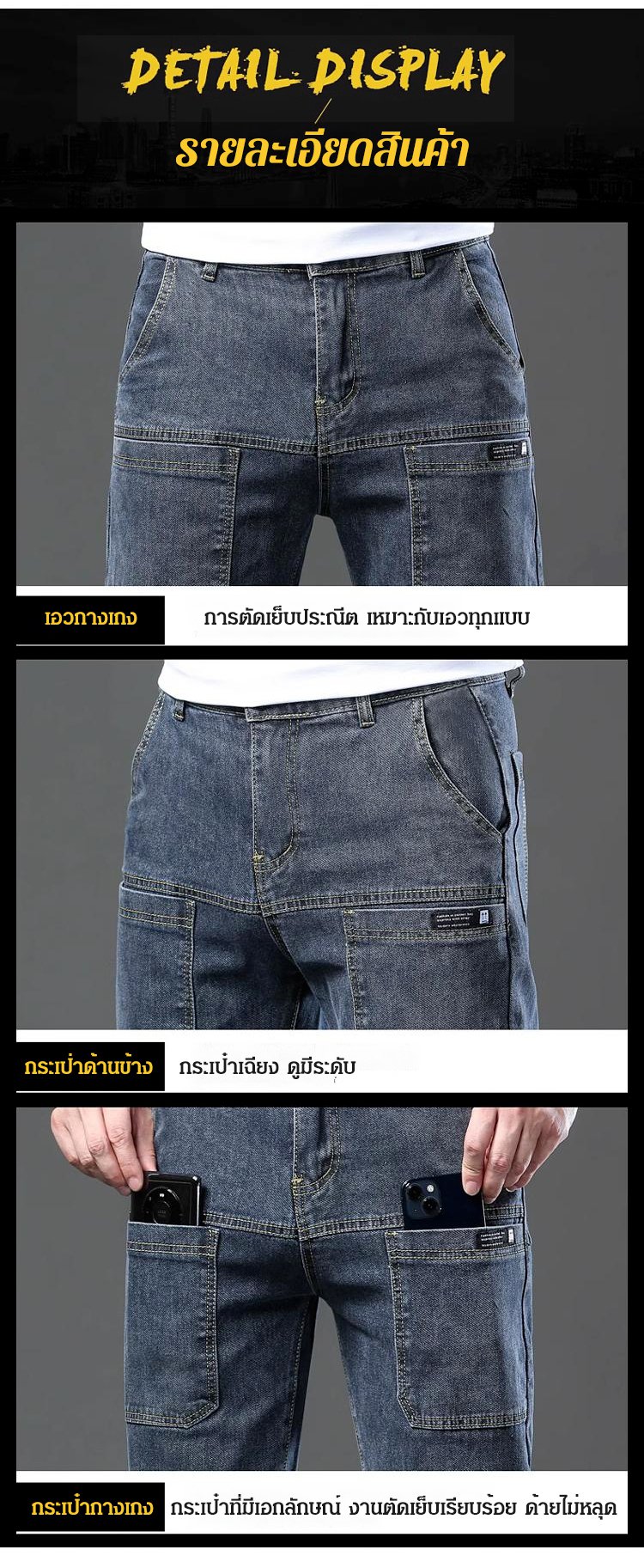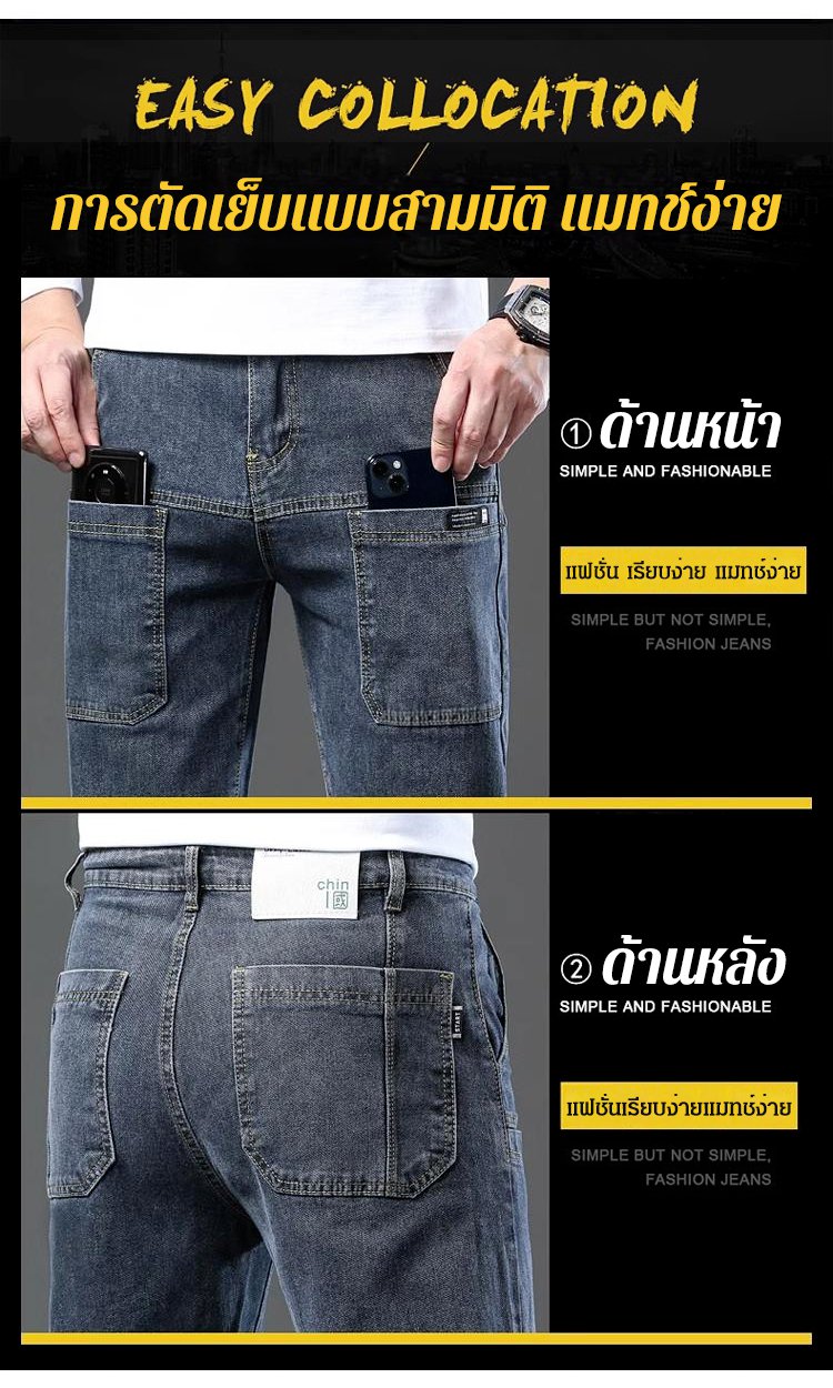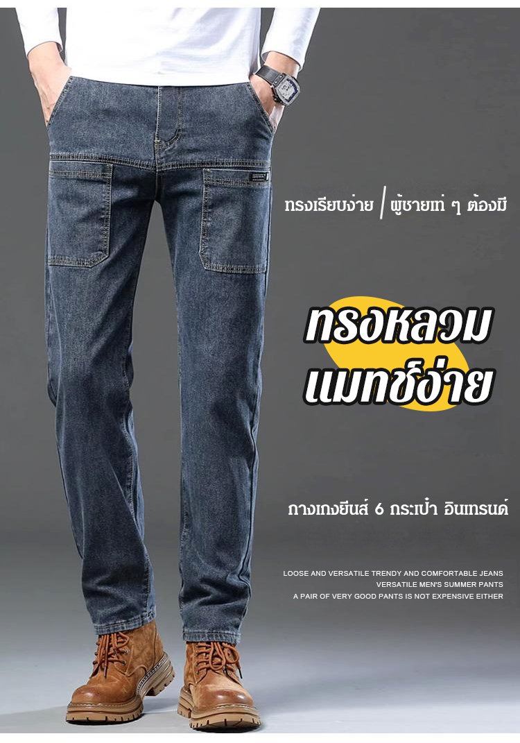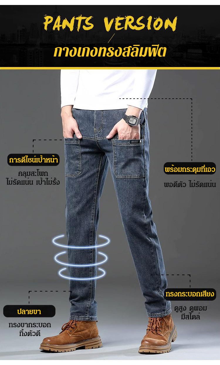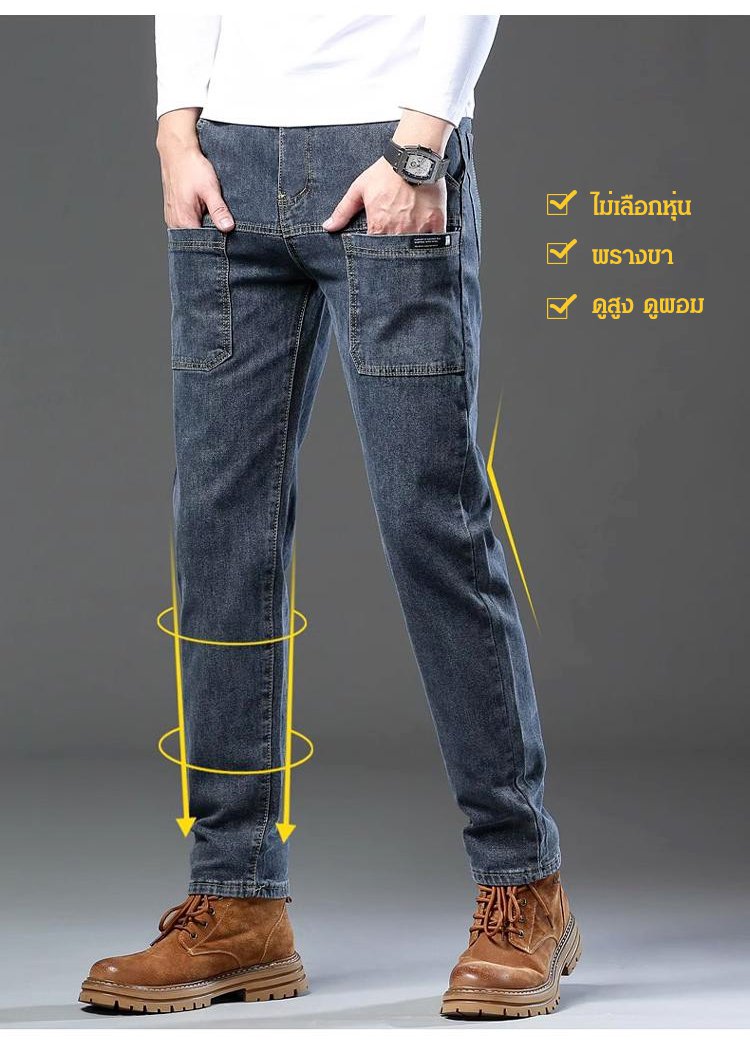 กางเกงยีนส์ผ้ายืดผู้ชาย ทรงขากระบอก